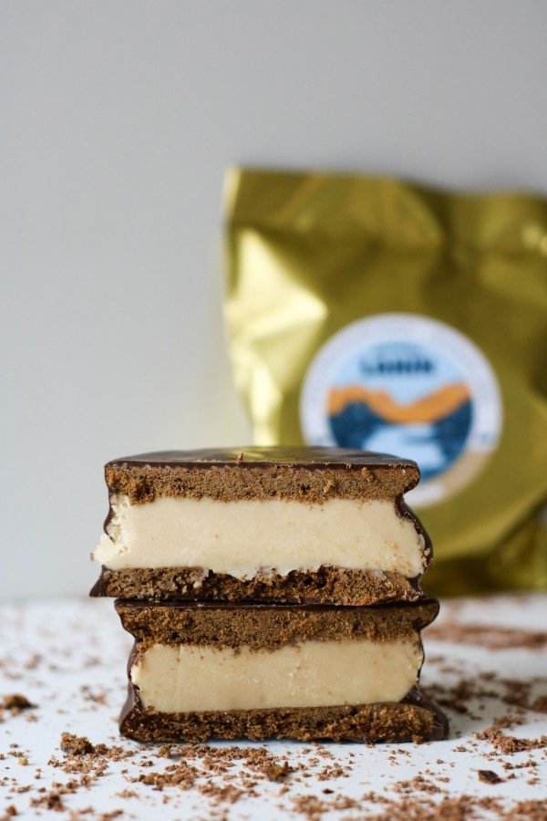 12 ALFAJORES RELLENOS DE CHOCOLATE BLANCO MEZCLADO CON PASTA DE MANÍ Y CON CUBIERTO CON BAÑO DE REPOSTERÍA SEMI AMARGO