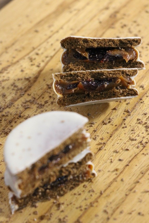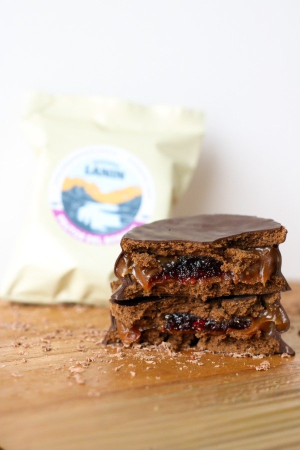 MEDIA DOCENA DE ALFAJOR RELLENO DE DULCE DE LECHE Y CORAZÓN DE FRUTOS DEL BOSQUE. INFORMAR SI LO QUIEREN CON BAÑO SEMI AMARGO, BLANCO O SURTIDA.